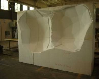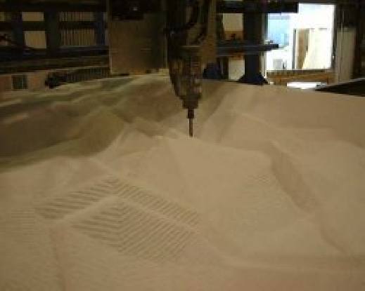 После того, как нарисовано изображение в 3D-графике, его разбивают на кусочки такого размера, которые можно изготовить на имеющемся станке (размере стола). Каждому кусочку, для удобства присваивают свой цвет в программе, а также присваивают номера или условные названия. После этого к каждому кусочку создают машинный файл, и называют его соответствующим именем или цифрой. Далее - дело техники. Обычно, быстрые габаритные формы делают из мягкого материала типа мелкопористого пенопласта. Кладут на стол кусок пенопласта, и любой фрезой (для металла, дерева, пластика) выполняют фрезеровку каждого кусочка, называемого сегментами.