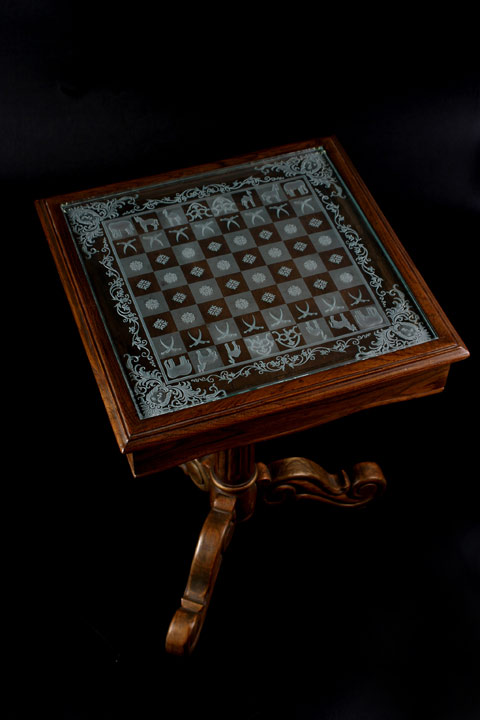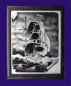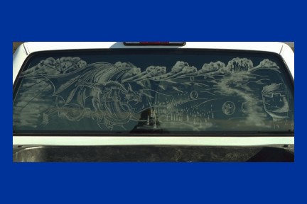 Все подобные изделия можно изготавливать на лазерных станках или на ЧПУ станках с применением метода амплитудно частотной гравировки. В некоторых случаях, большие изделия можно изготовить только применяя ЧПУ станки. Это относится к фрезеровке стекла на глубину и фигурной резке. На зеркале Вы видите сразу все три варианта обработки - фигурная вырезка, глубинная 3D фрезеровка и поверхностная гравировка.
