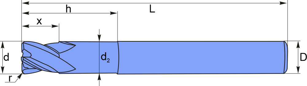 Фреза концевая с радиусом и шейкой