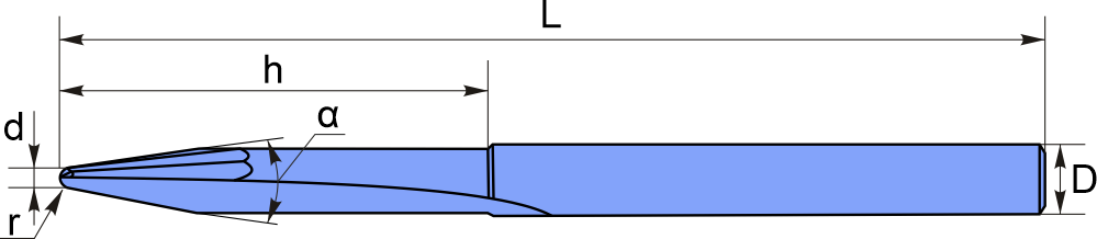Режущий диаметр (d) - 1мм, Радиус (r) - 0.5мм, Полный угол (α) - 12, Рабочая длина (h) - 30мм, Общая длина (L) - 70мм, Диаметр хвостовика (D) - 6мм, Количество зубьев (z) - 2, Износостойкое покрытие - Без покрытия, Сплав - SpeVHM eXp, Серия инструмента - eXpress серия A, N2 - композитные, древесина - Полностью подходит, Тип товара - Конусная фреза сферическая