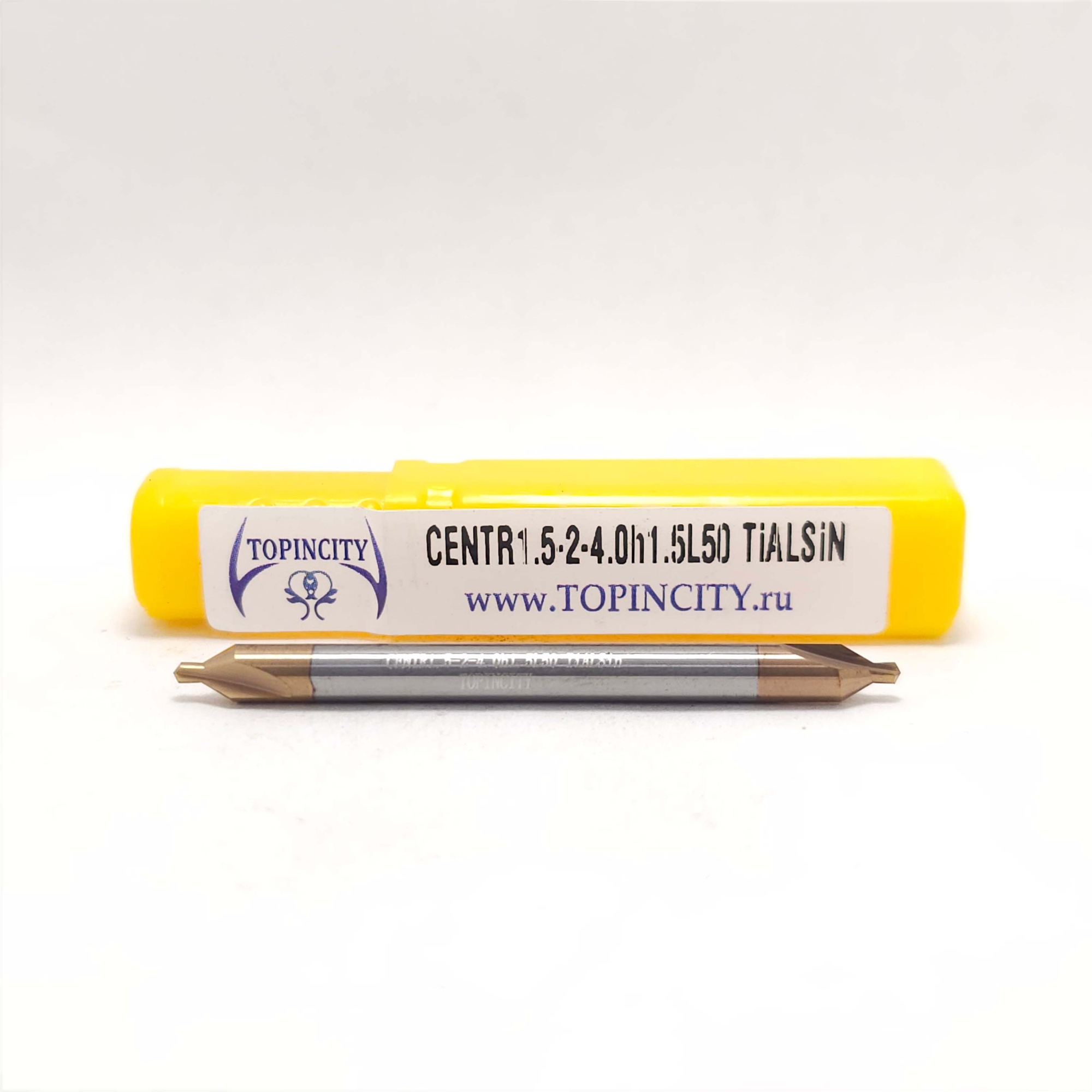 Центровочное сверло TOPINCITY CENTR1.5-2-4.0h1.5L50 TiALSiN